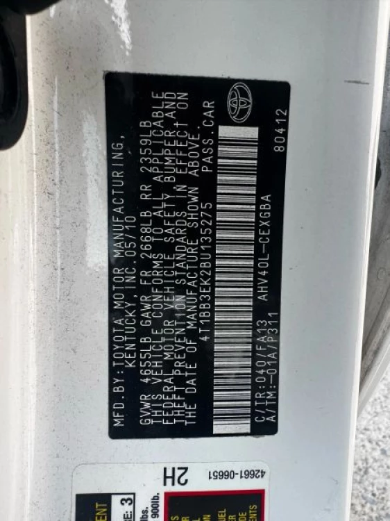 VIN 4T1BB3EK2BU135275