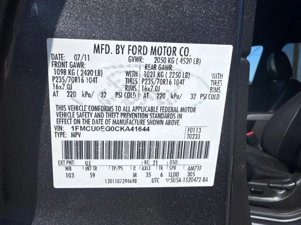 VIN 1FMCU0EG0CKA41644