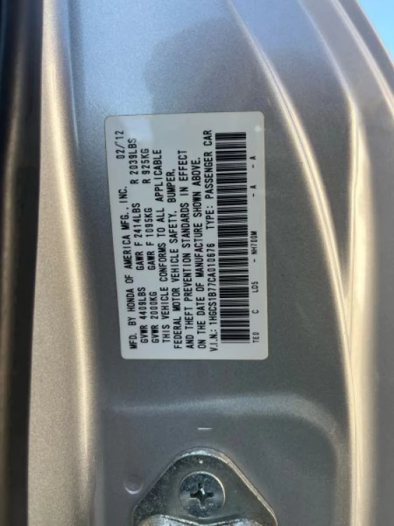 VIN 1HGCS1B77CA010676