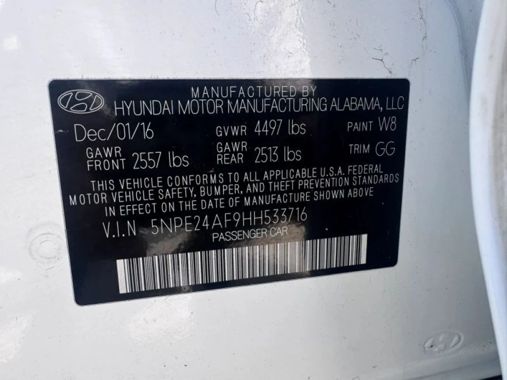 VIN 5NPE24AF9HH533716