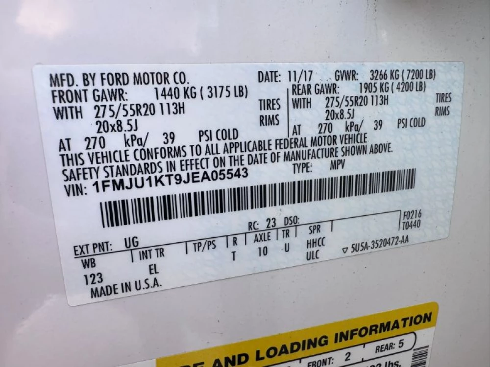 VIN 1FMJU1KT9JEA05543
