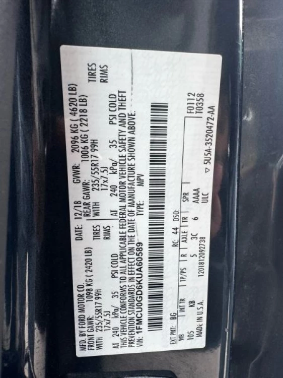VIN 1FMCU0GD6KUA60589