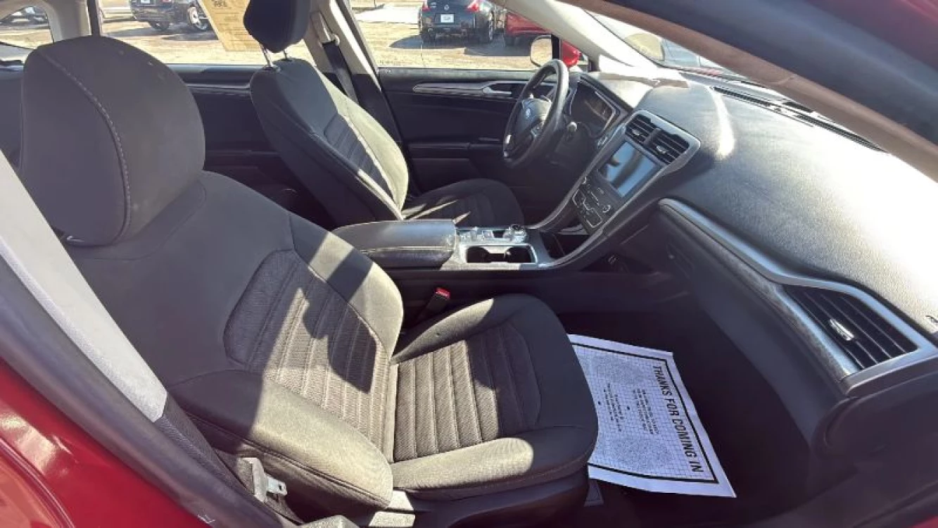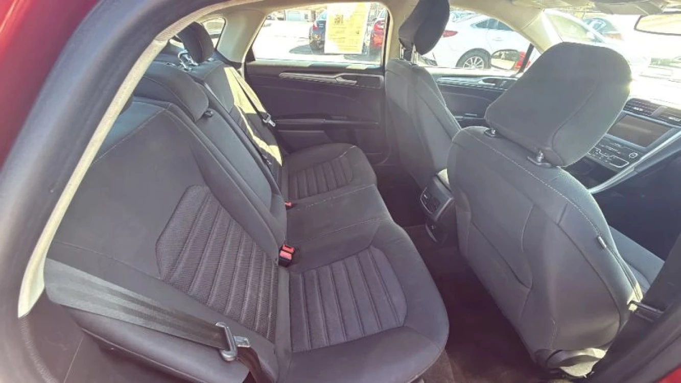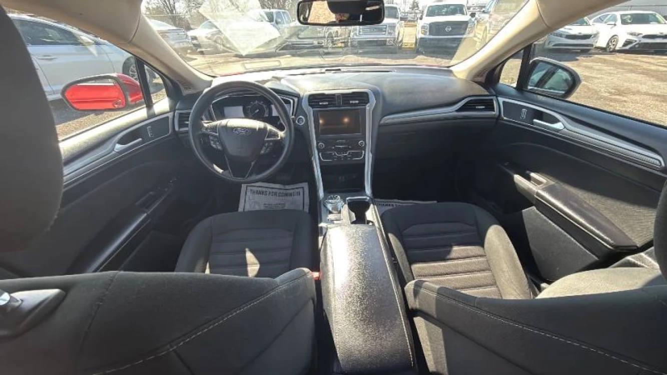 Remote Trunk Release Alarm System Dual Air Bags Power Steering Hill Start Assist Power Windows CD/MP3 (Single Disc) Reverse Sensing System F&R Head Curtain Air Bags FWD ABS (4-Wheel) Power Seat Blind-Spot Information System Ford Co-Pilot360 4-Cyl EcoBoost Turbo 1.5 Liter Power Door Locks Side Air Bags Keyless Entry Heated Seats Tilt & Telescoping Wheel Cruise Control Traction Control Lane Keep Assist SYNC Automatic 6-Spd w/SelectShift SiriusXM Satellite AdvanceTrac Backup Camera Push Button Start Knee Air Bags Daytime Running Lights Air Conditioning Bluetooth Wireless Alloy Wheels AM/FM Stereo