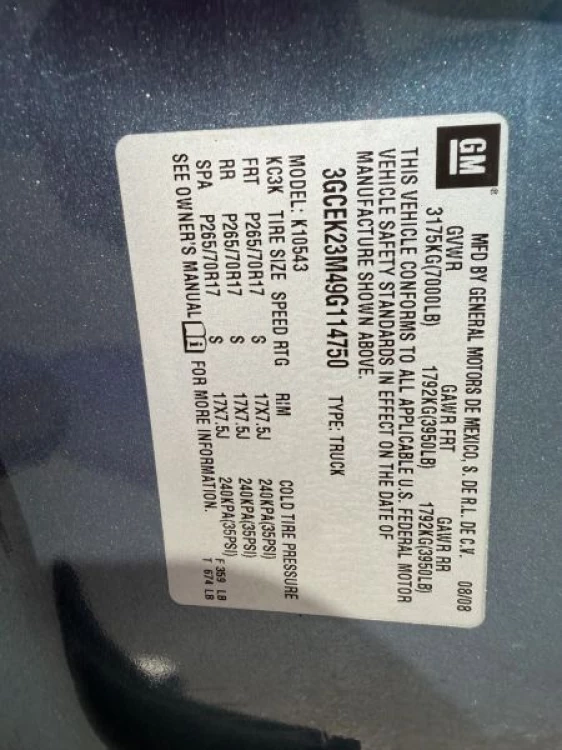 VIN 3GCEK23M49G114750