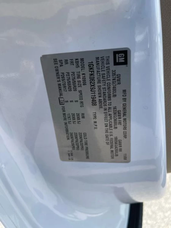VIN 1GKFK062X9J119408