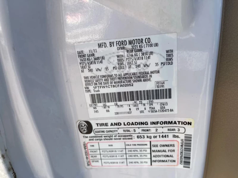 VIN 1FTFW1CT8CFA02052