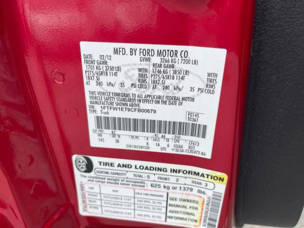 VIN 1FTFW1ET9CFB00679