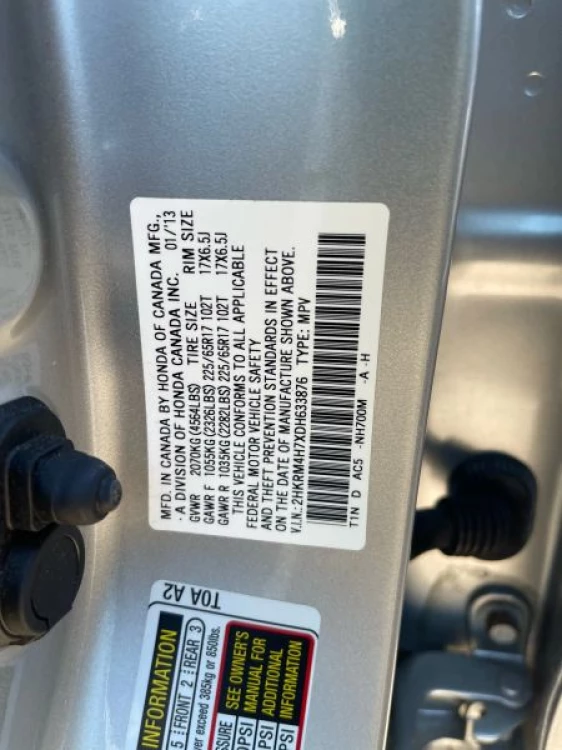 VIN 2HKRM4H7XDH633876