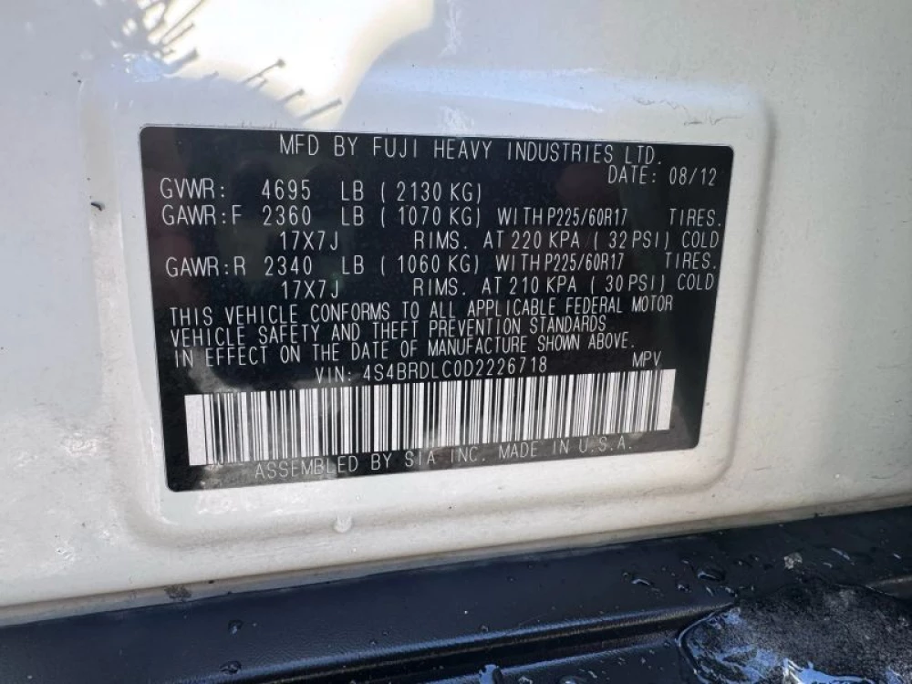 VIN 4S4BRDLC0D2226718