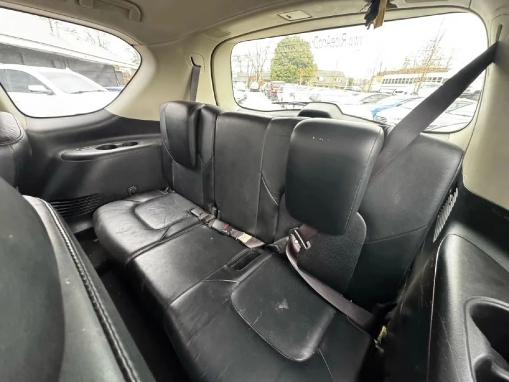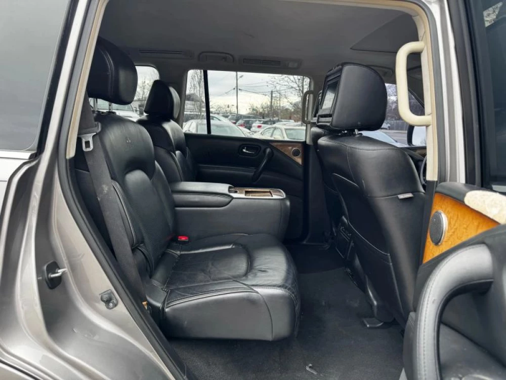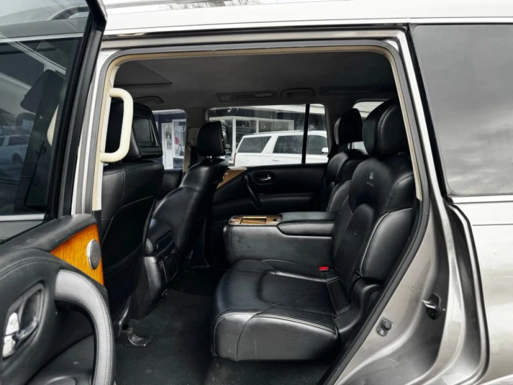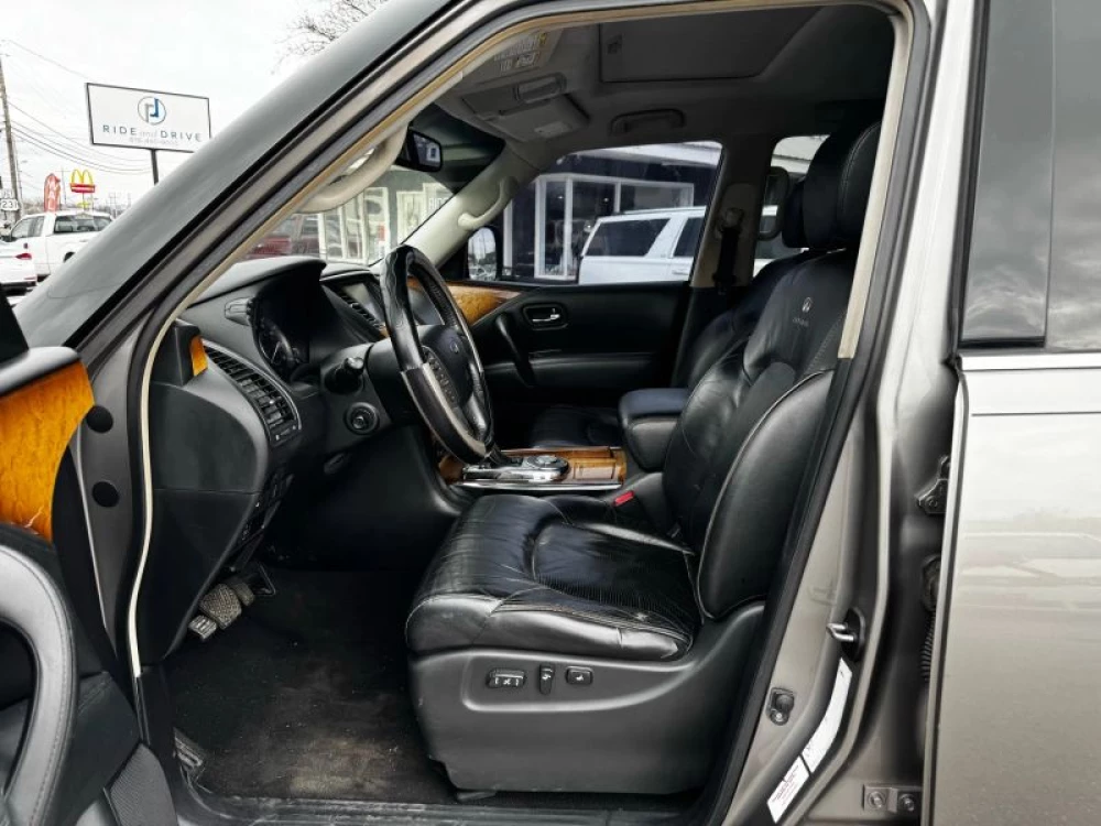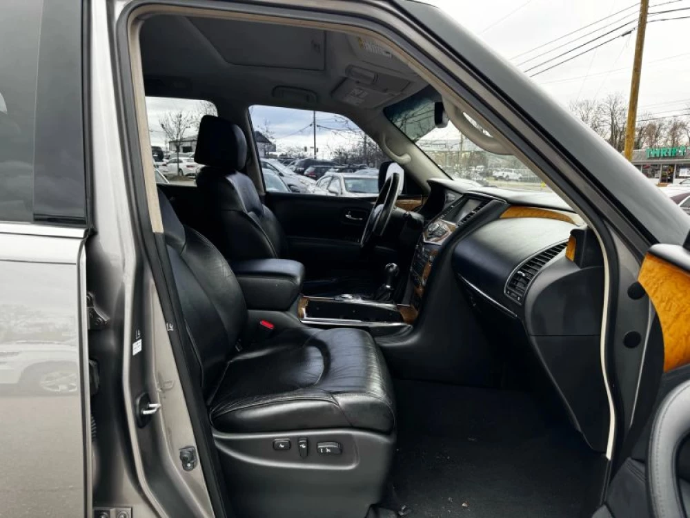 Power Third Row Power Steering Tilt Wheel ABS (4-Wheel) Power Door Locks Air Conditioning Navigation System 2WD Fog Lights Cruise Control Infiniti Connection Plus Power Windows Keyless Entry Traction Control Power Liftgate Release Auto 7Spd Adpt Rev Mtchng Keyless Start F&R Parking Sensors Hill Start Assist Heated Seats Bose Premium Sound Anti-Theft System Alloy Wheels SiriusXM Satellite Dual Power Seats Quad Seating (4 Buckets) Bluetooth Wireless Running Boards Dual Air Bags V8 5.6 Liter Air Conditioning Rear CD/MP3 (Single Disc) F&R Head Curtain Air Bags Leather Rear Spoiler Moon Roof Roof Rack Parking Sensors Side Air Bags Vehicle Dynamic Control AM/FM Stereo