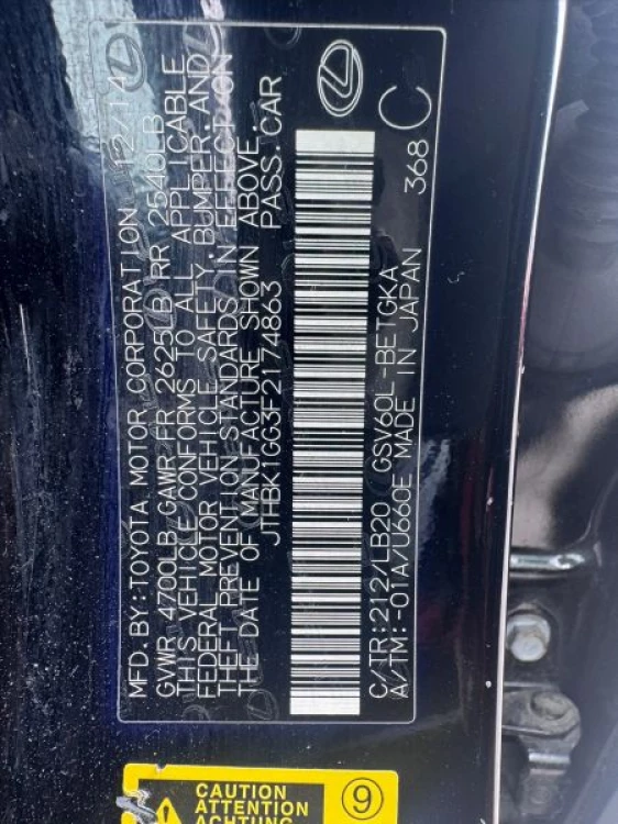 VIN JTHBK1GG3F2174863