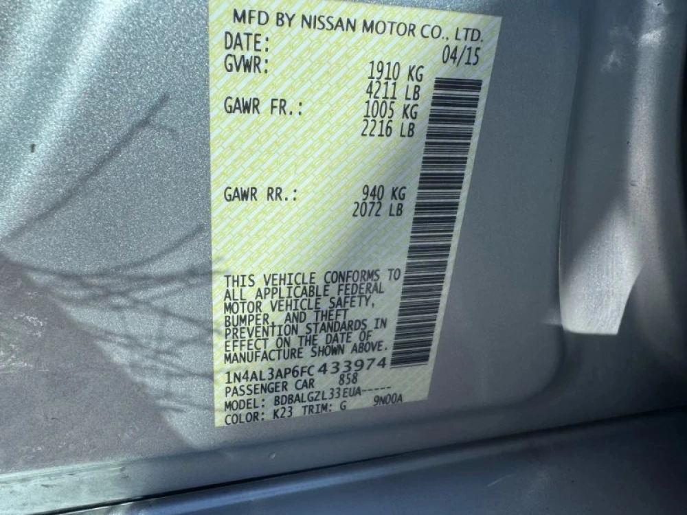 VIN 1N4AL3AP6FC433974