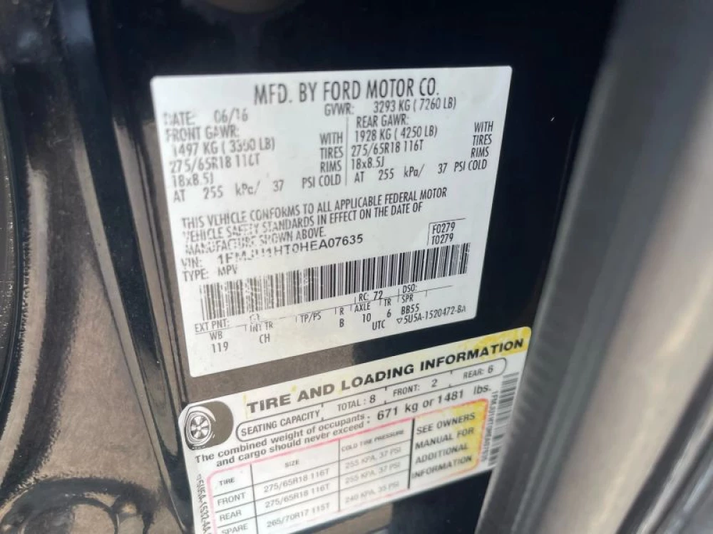 Fog Lights 2WD SYNC Side Air Bags Power Windows Running Boards Backup Camera Power Steering Towing Pkg MyFord Third Row Seat ABS (4-Wheel) Dual Air Bags Hill Start Assist Control Alloy Wheels Keyless Entry Air Conditioning Rear Roof Rack Auto 6-Spd SelectShift Power Door Locks Alarm System F&R Head Curtain Air Bags Air Conditioning SiriusXM Satellite Power Seat CD/MP3 (Single Disc) Hill Descent Control AdvanceTrac Parking Sensors V6 EcoBoost TT 3.5L Tilt & Telescoping Wheel AM/FM Stereo Traction Control Cruise Control