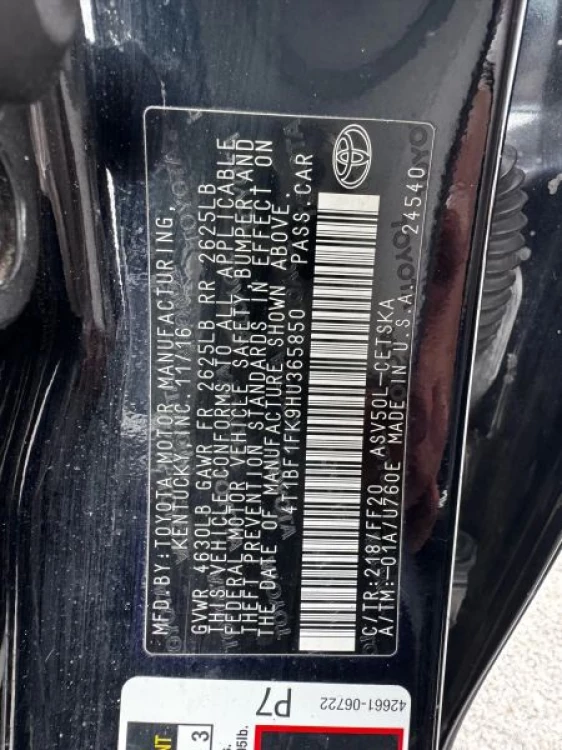 VIN 4T1BF1FK9HU365850