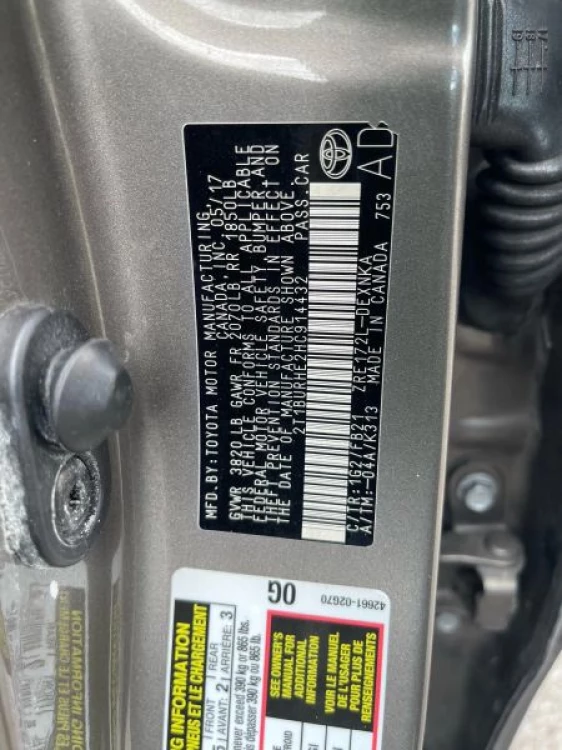 VIN 2T1BURHE2HC914432