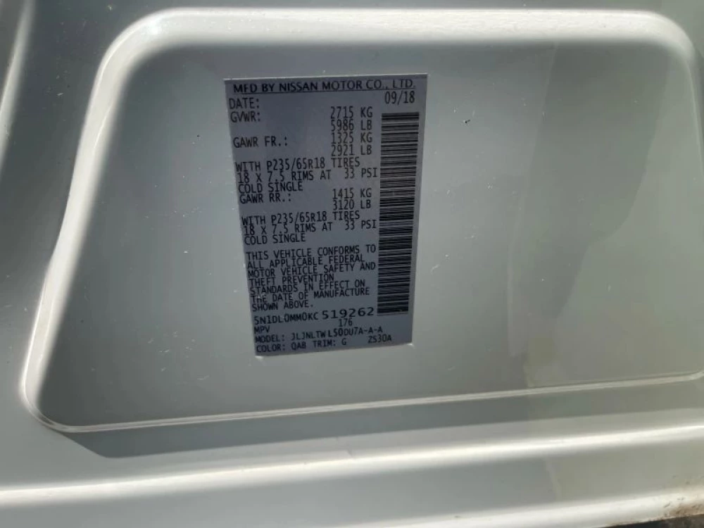 VIN 5N1DL0MM0KC519262