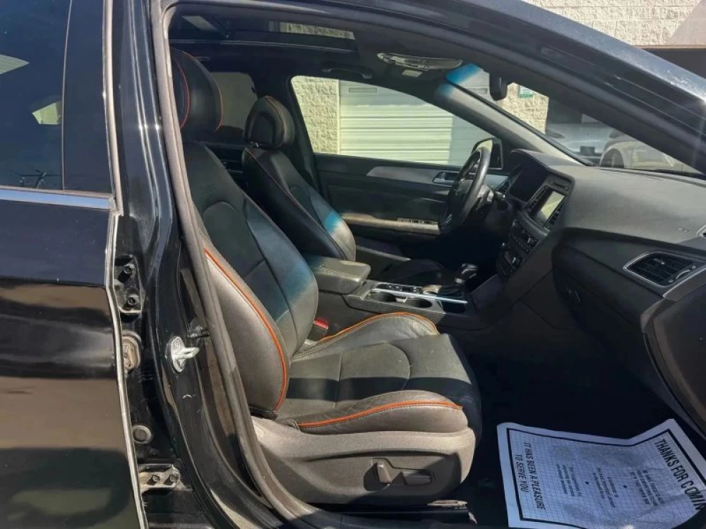 Auto 6-Spd w/Shiftronic & Drive Mode Select Gen 1 Blue Link Telematics ABS (4-Wheel) Daytime Running Lights Dual Power Seats HID Headlamps Power Door Locks SiriusXM Satellite Side Air Bags Panoramic Moon Roof Power Steering Dual Air Bags Air Conditioning Leather Heated Seats Smart Cruise Control Electronic Stability Control FWD Bluetooth Wireless Tilt & Telescoping Wheel Knee Air Bags Keyless Start Alloy Wheels 4-Cyl Turbo 2.0 Liter AM/FM Stereo Cooled Seats Alarm System Keyless Entry F&R Head Curtain Air Bags Navigation System Blind-Spot Detection Hill Start Assist Control Parking Sensors CD/MP3 (Single Disc) Power Windows Rear Spoiler Traction Control Backup Camera